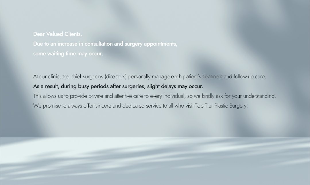 TOP TIER Plastic Surgery, founded by Seoul National University alumni, is dedicated to promoting healthy and natural beauty.